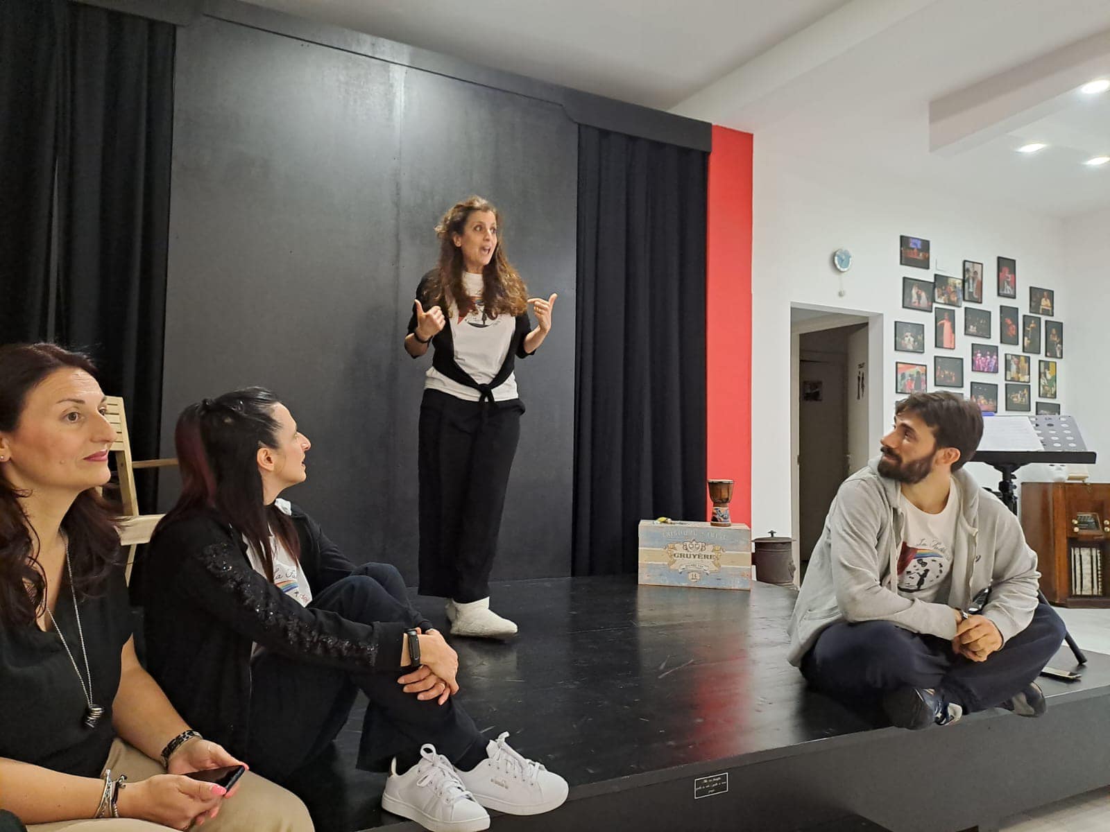 Sali sul palco e vediamo che succede! Prova, gioca, sogna, collabora, tira fuori idee. Crediamo molto nella cooperazione, nella co-conduzione dei laboratori perché in due si pensa meglio, crediamo nelle regie collettive perché le idee di tutti meritano di essere ascoltate. Non crediamo nella sovranità registica, nella severità del maestro che vuole solo disciplina, nelle idee di un singolo. Crediamo nelle persone, tutte!